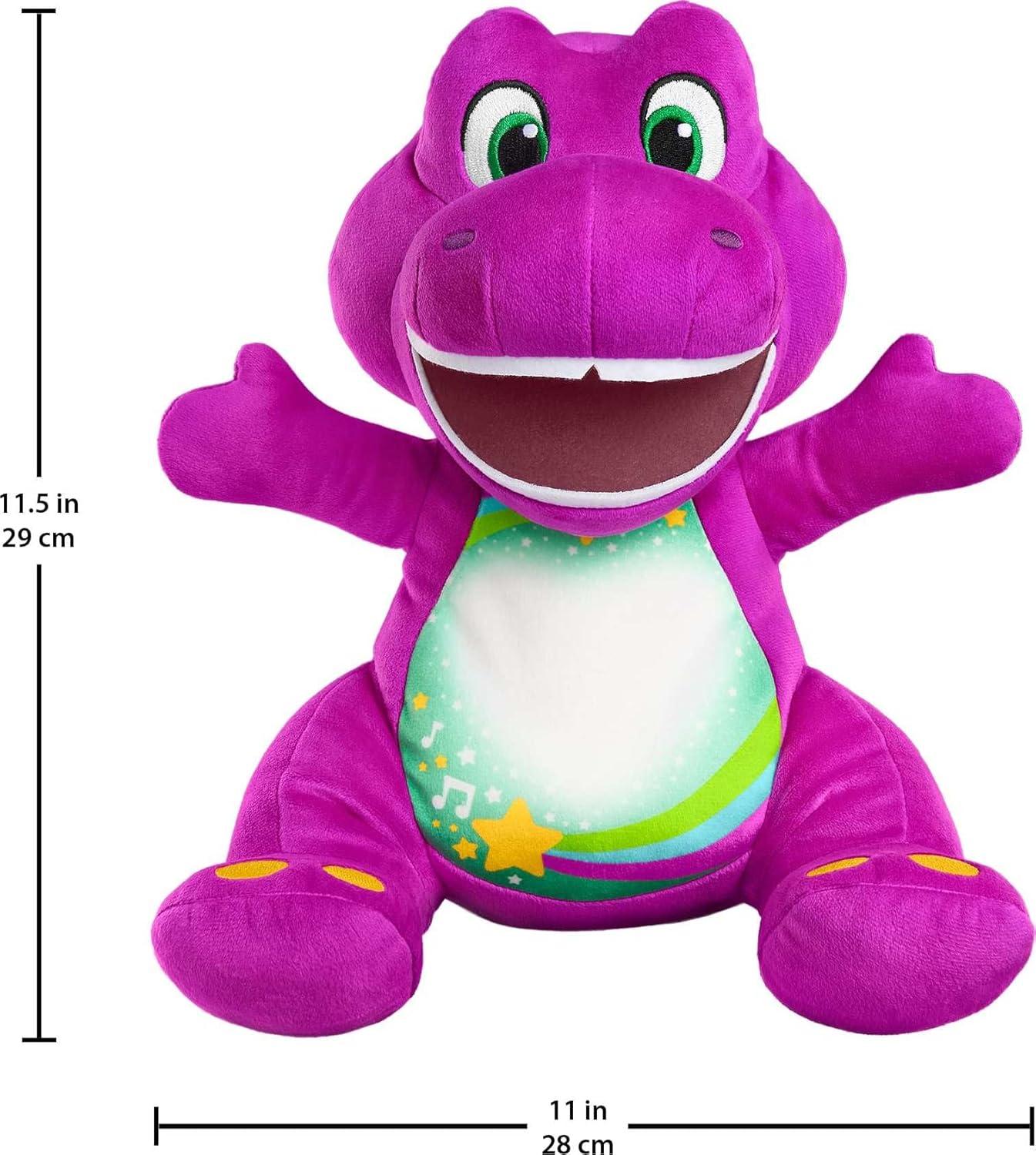 ​Inspired by the Barney’s World series, this 11.5-inch plush Barney lights up along to the beat of fun music and phrases