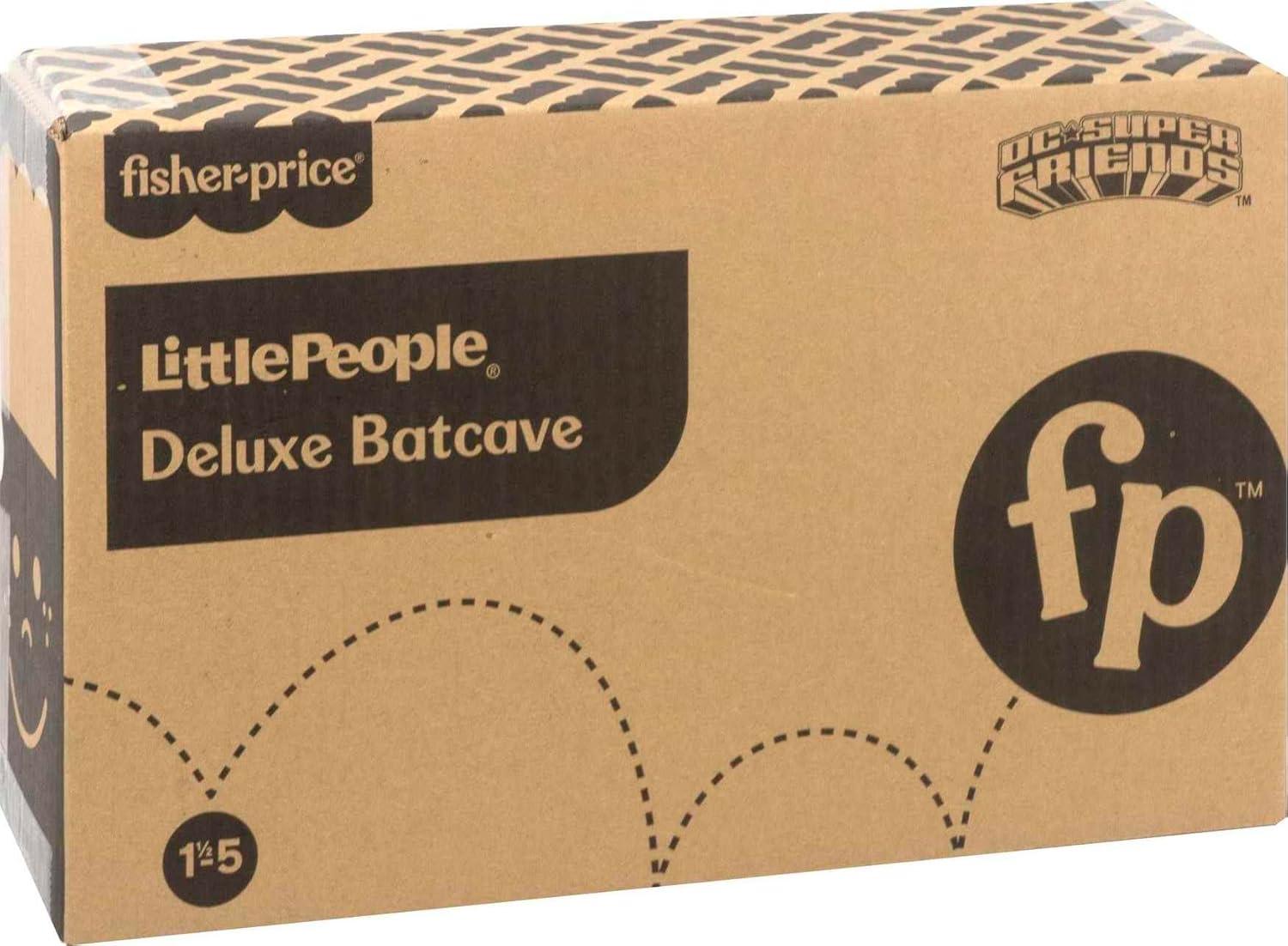 Set featuring Little People Batcave playset, 4 DC Super Friends character figures, 2 push-along cars, and a play piece