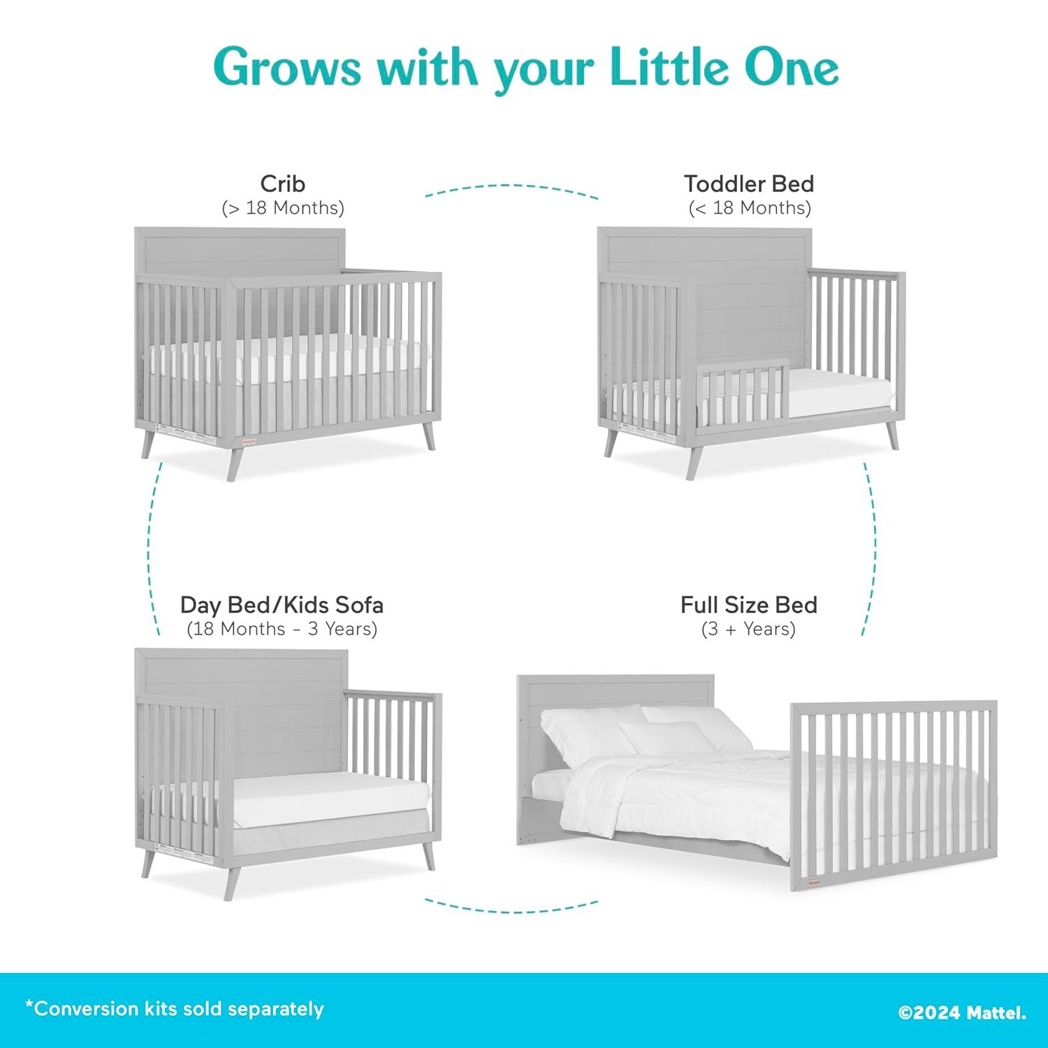 GROWS WITH YOUR LITTLE ONE: This contemporary crib is designed to transition along with your child by effortlessly converting from a crib into a toddler bed, daybed and full-size bed (Conversion kit sold separately).