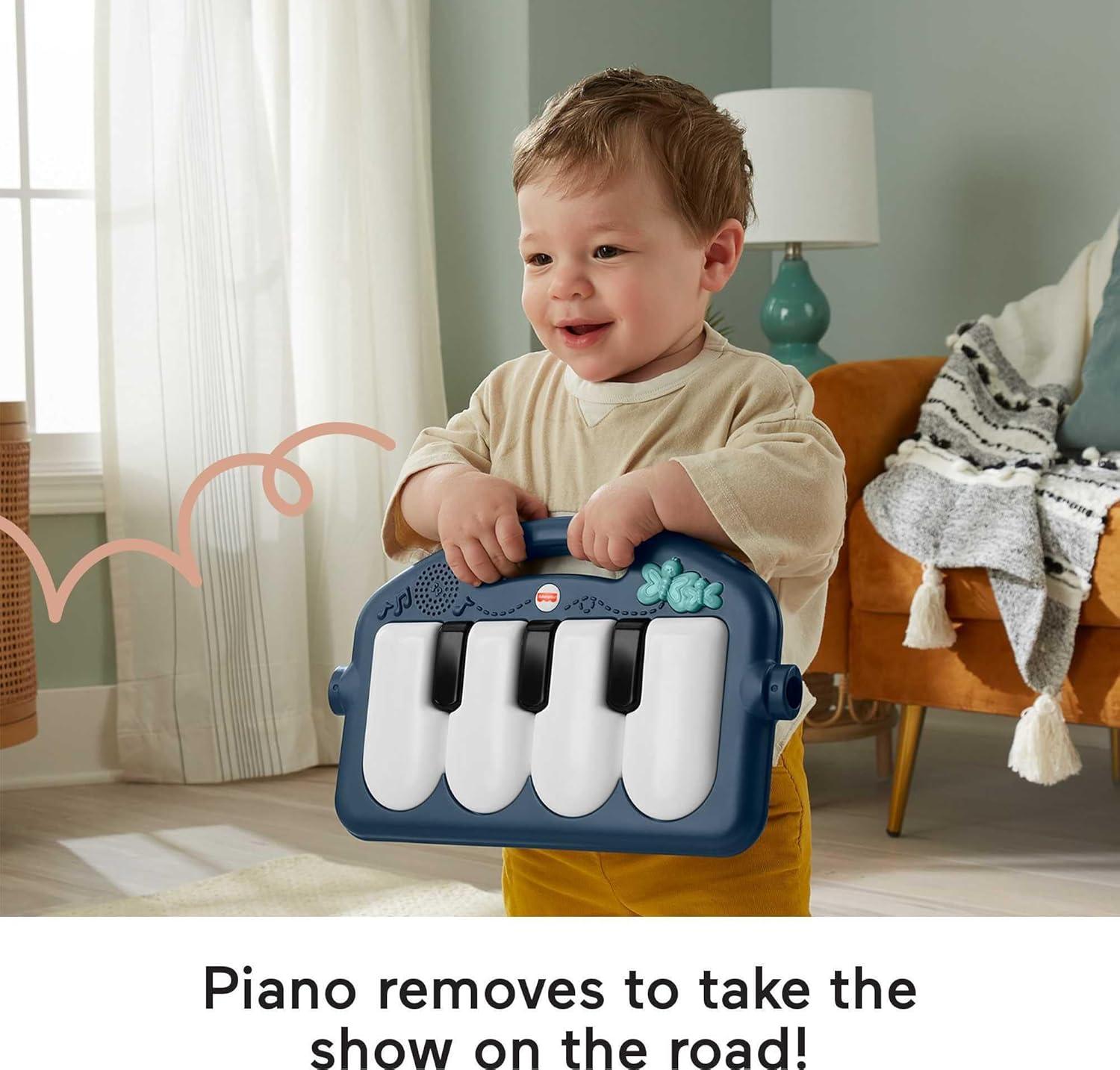 Fisher-Price Baby Playmat Glow and Grow Kick & Play Piano Gym, Blue Musical Learning Toy with Developmental Activities for Newborns 0+ Months(Navy)