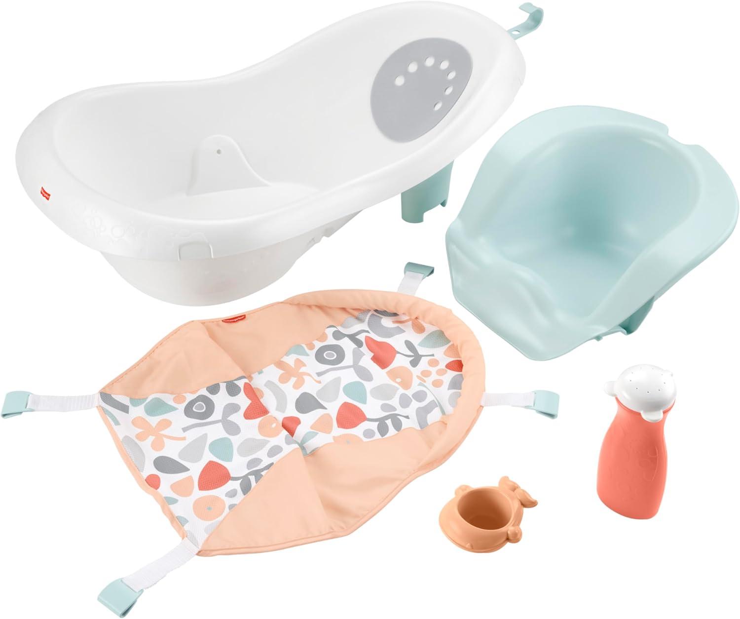 As your newborn becomes a toddler, their bath time goes from a simple soak to a high seas adventure. The Fisher-Price™ 4-in-1 Sling 'n Seat Tub can do it all: from the soft mesh sling built for baby's first bath, to a supportive seat for wobbly sitters, and a spacious toddler tub with a scoop and rinse bottle. This baby bath has four stages that adapt from newborn to toddler and all the splashes in between.