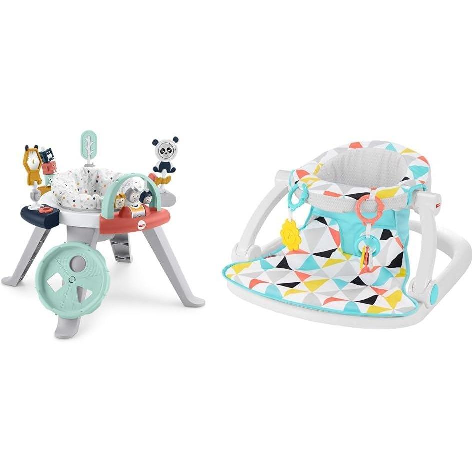 Fisher-Price Baby to Toddler Toy 3-in-1 Spin & Sort Activity Center and Play Table with 10+ Activities, Happy Dots(Activity Center + Baby Chair Windmill)