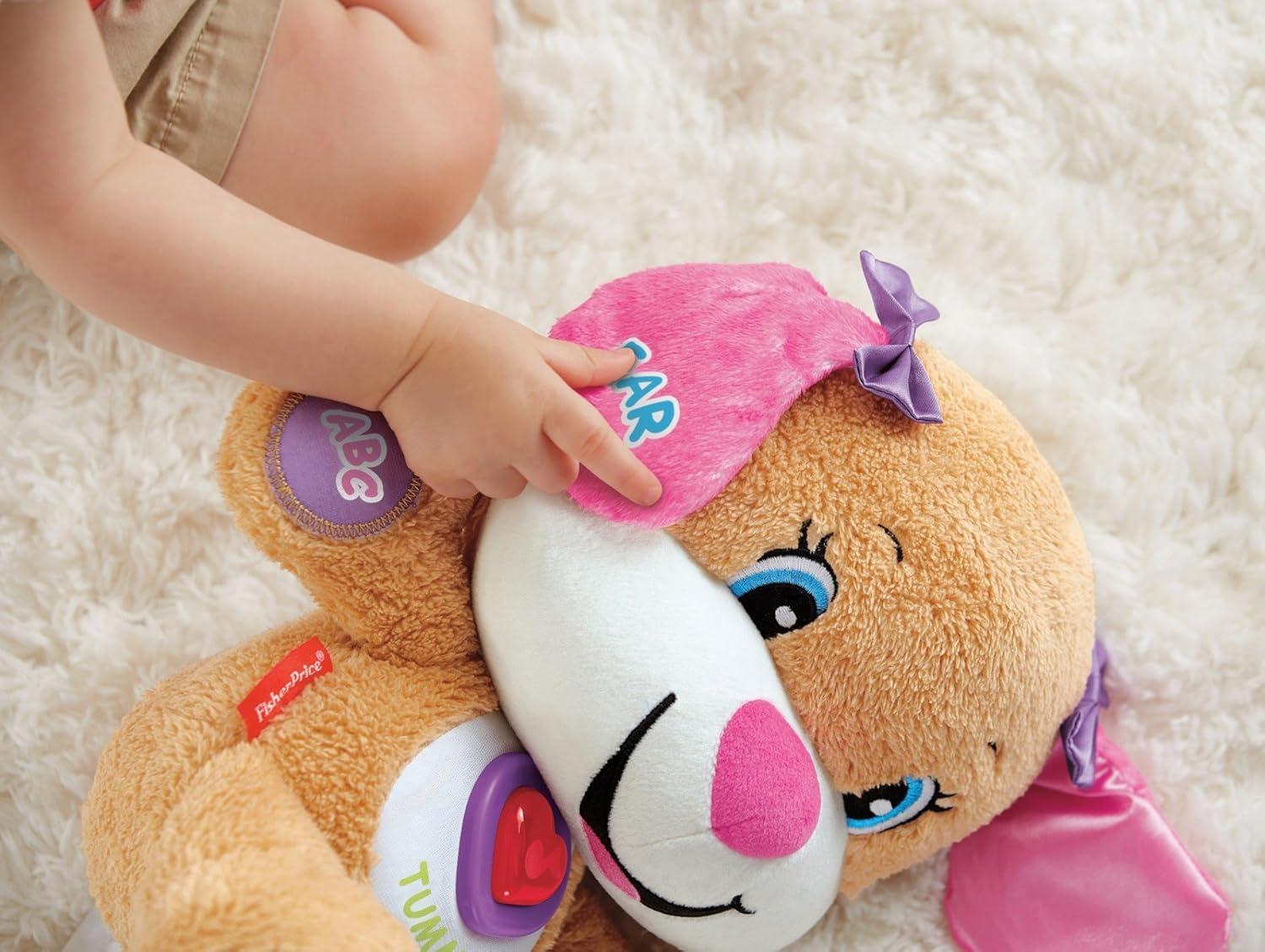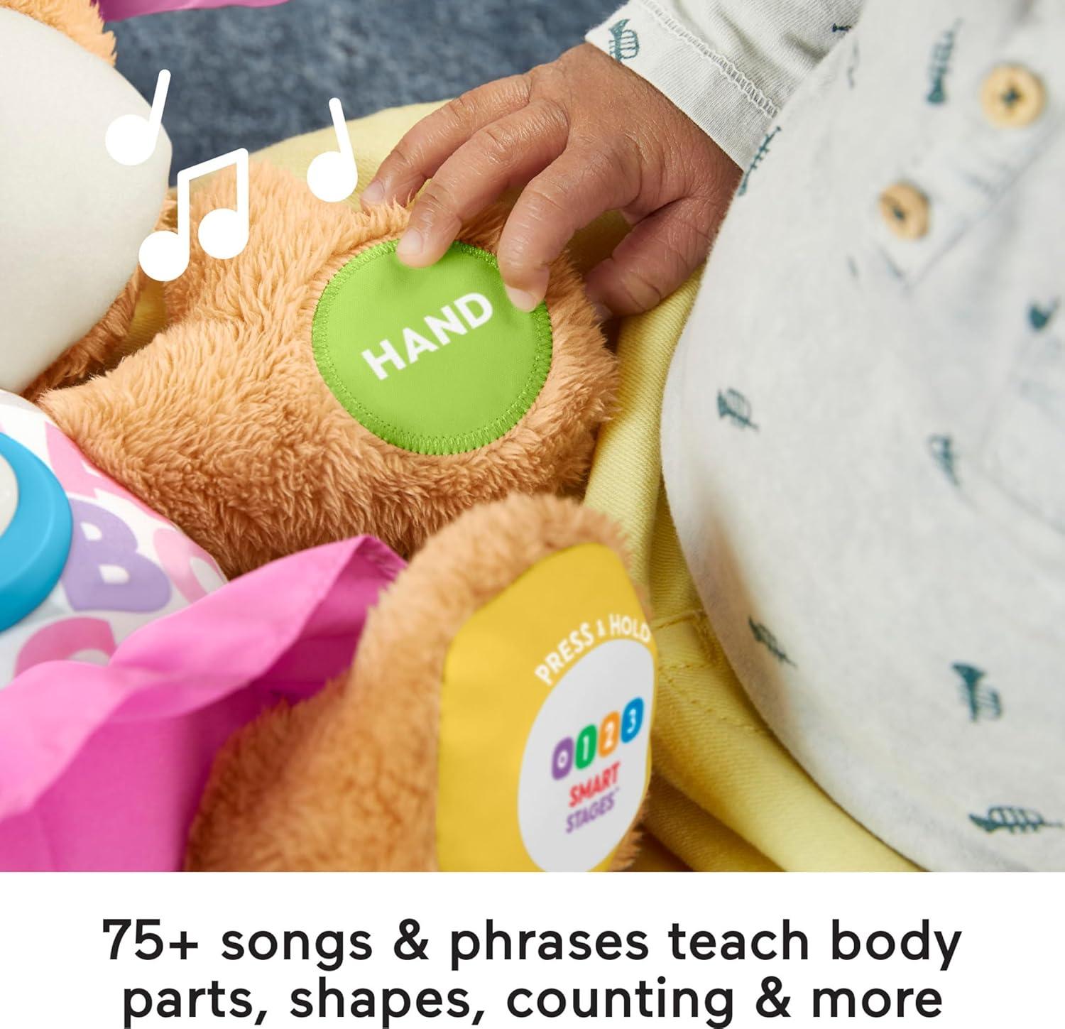 The Laugh & Learn Smart Stages Sis musical plush toy from Fisher-Price is soft, cuddly, and ready to be your baby’s first best friend. This interactive learning toy responds to your baby's touch with exciting songs, sounds and phrases that introduce more than 100 first words, including parts of the body, colors, shapes and more. And with 3 Smart Stages levels, the learning fun grows along with your child!