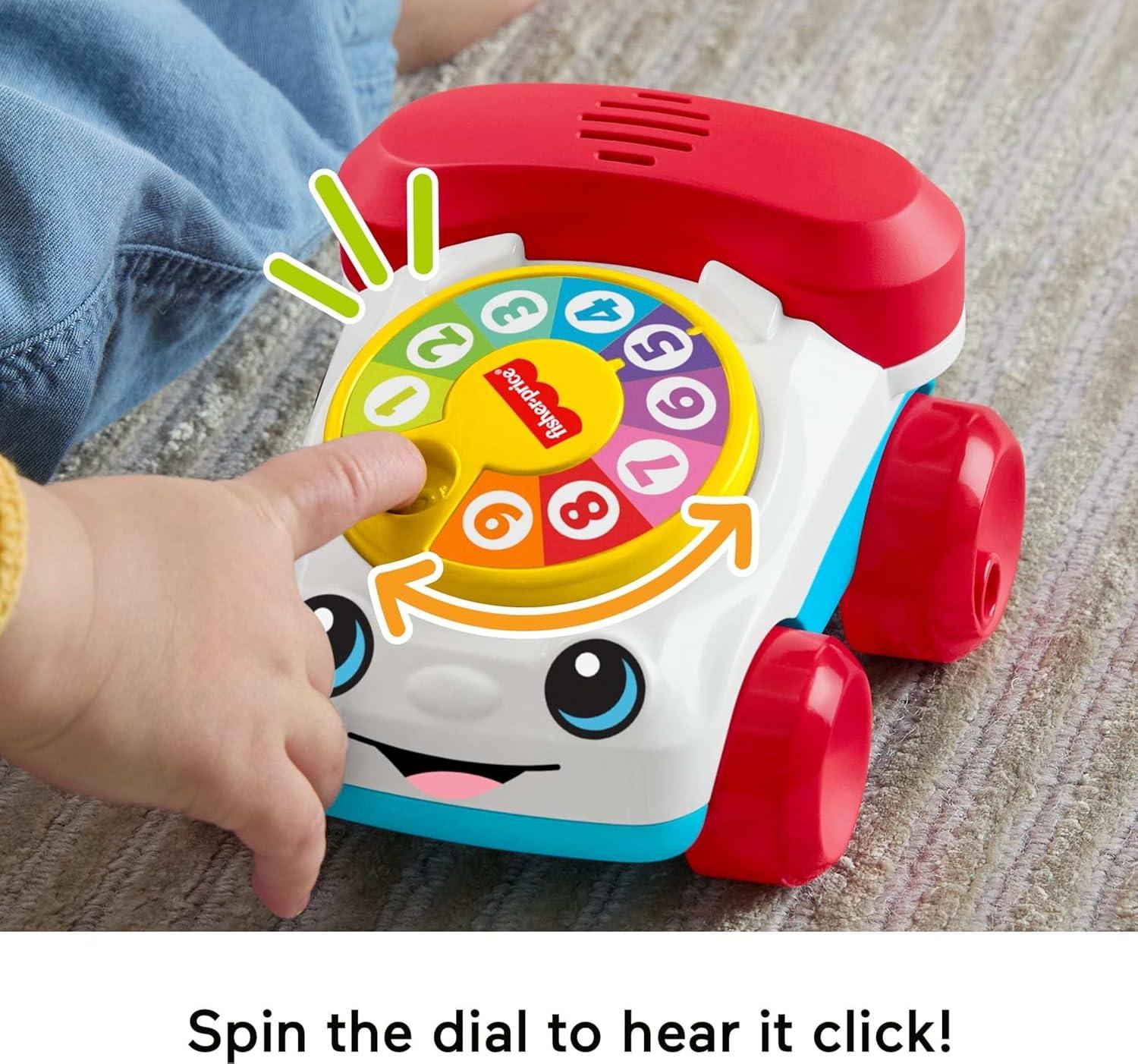 The classic Fisher-Price Chatter Telephone toy is reimagined as a push-along vehicle for exciting motor skills-boosting play