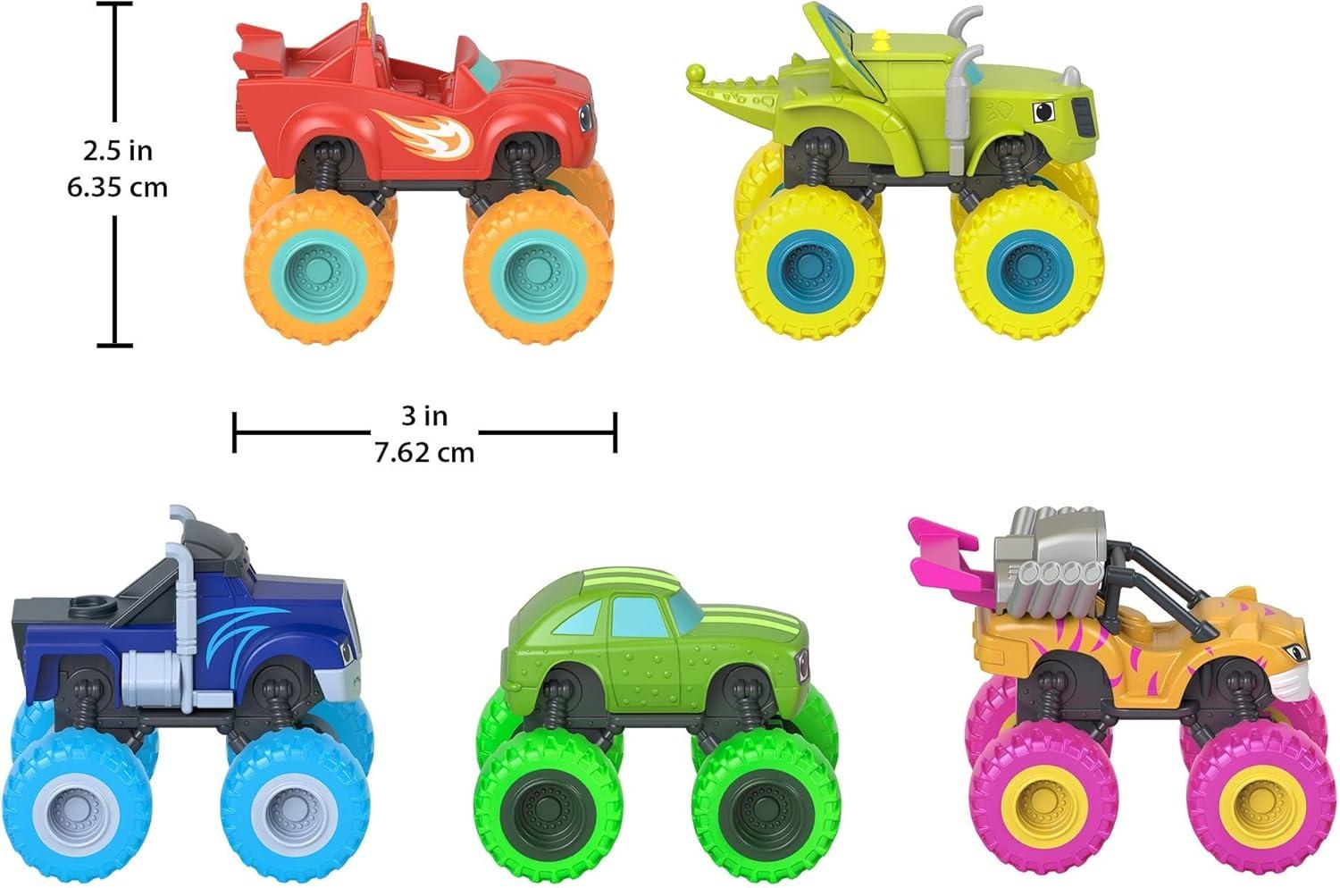 Fisher-Price Blaze and The Monster Machines Diecast Toys, Racers 4 Pack of Push-Along Metal Vehicles for Pretend Play Preschool Kids Ages 3+ Years(5 pack)