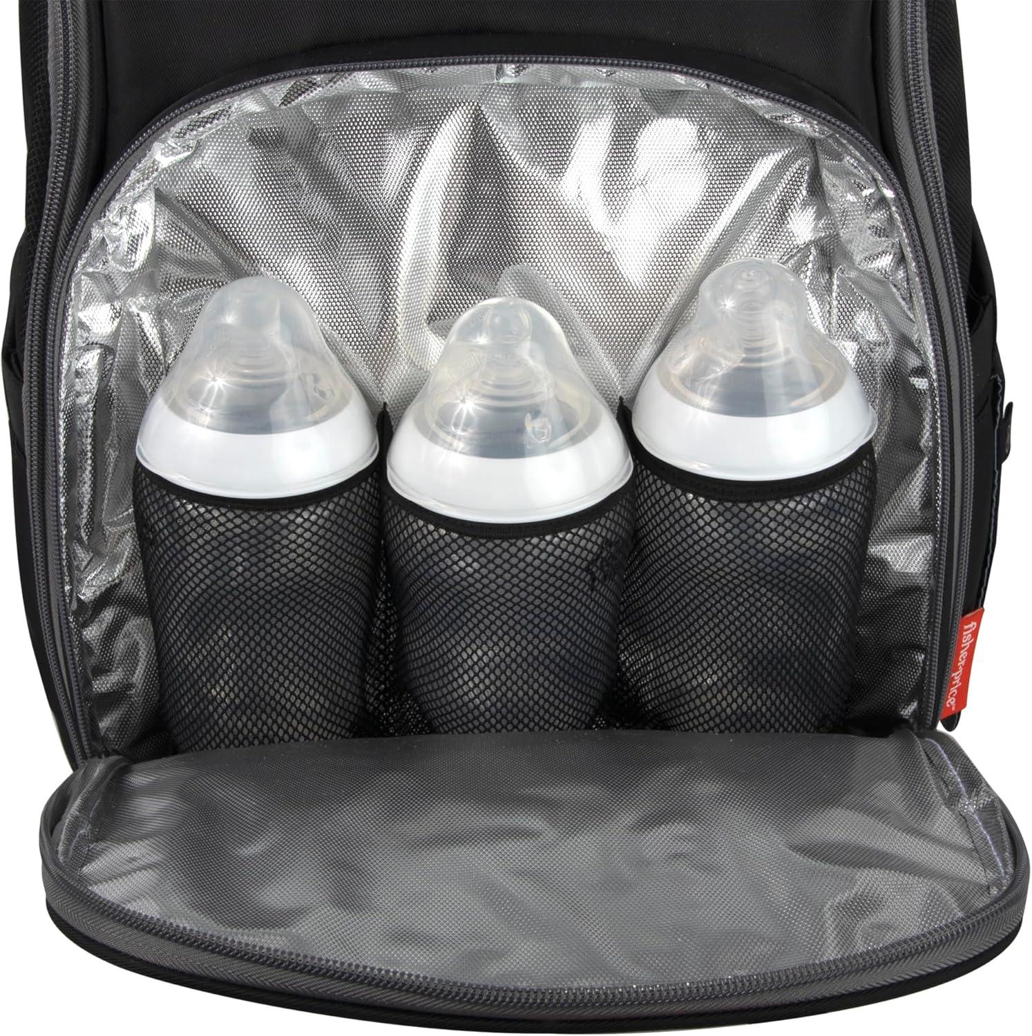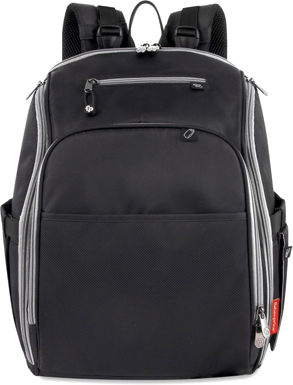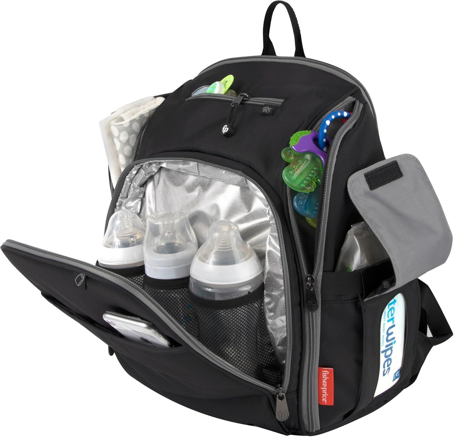 A leader in the field of all things baby, we bring to you the Fisher-Price Fastfinder 3 Piece Multi-Pocket Diaper Bag Backpack with Matching Changing Pad, Baby Wipes Dispenser Pocket, Insulated Bottle Pocket and More for Newborns and Infants. This Fisher-Price wide open diaper bag for women and men is unisex in design and is the ideal mommy or daddy diaper bag backpack. Also a perfect modern baby shower gift, Fisher-Price designs diaper bags with the needs of today’s moms and dads in mind. Containing a matching changing pad, insulated bottle pocket and baby wipes dispenser on the exterior of the bag for quick and easy access, this bag is great for when you and your baby need to grab and go.