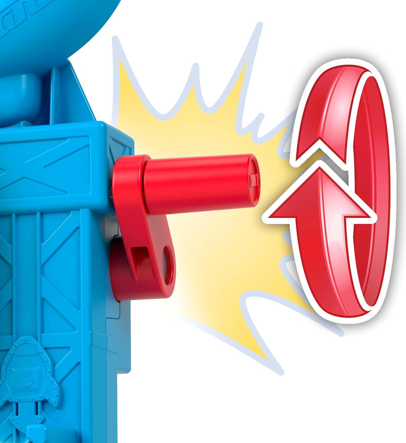 By putting Buzz Lightyear in his rocket ship and cranking the lever, kids can take him on epic space missions!
