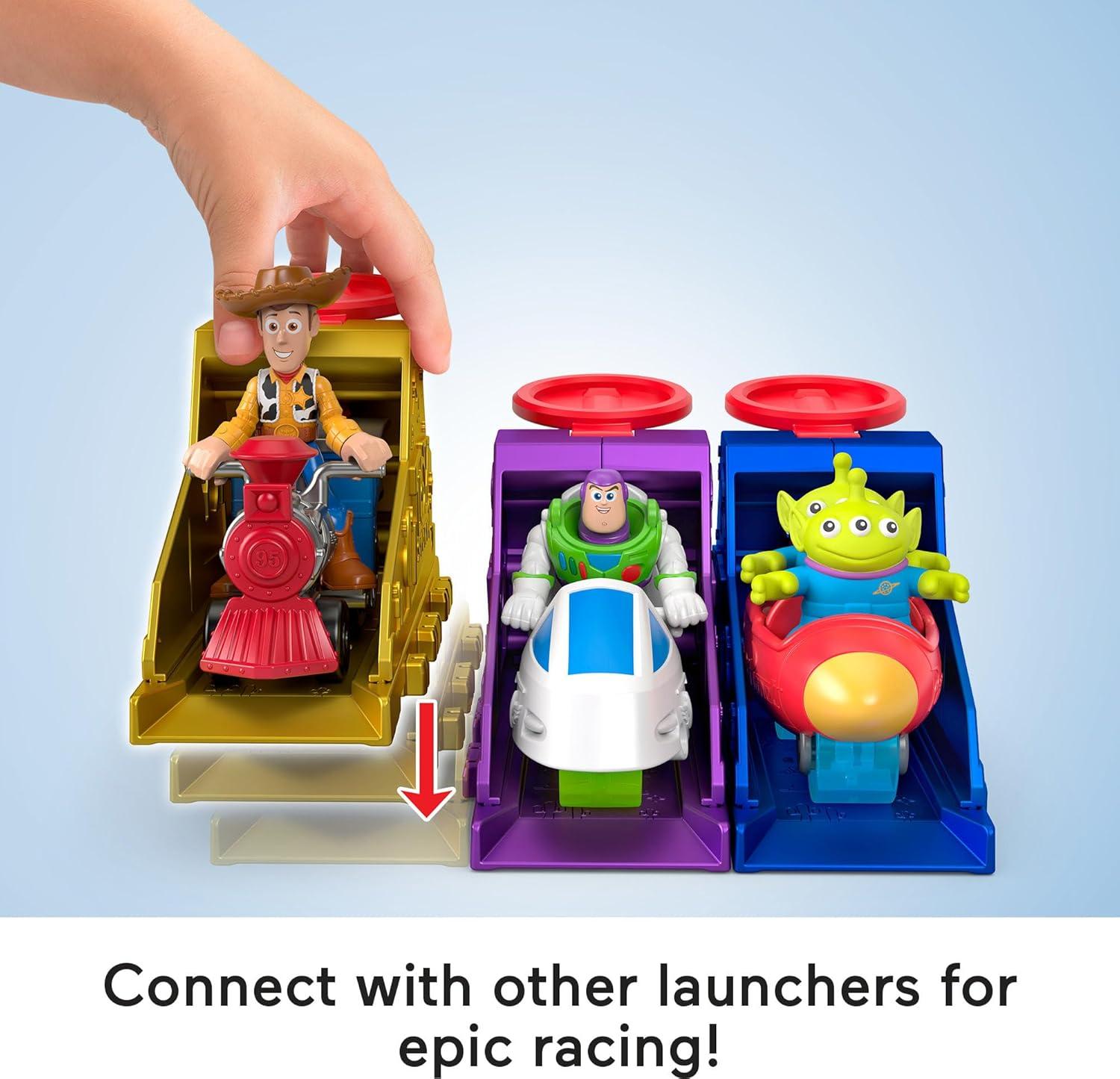 With the Imaginext Toy Story Launcher sets, kids can launch their favorite Toy Story characters into high-speed action adventures! Each launcher comes with a 3-inch action figure and signature toy vehicle for play right out of the box. All launchers can connect for enhanced racing play. Kids can look for a favorite character or collect them all! Each sold separately, subject to availability. Colors and decorations may vary.
