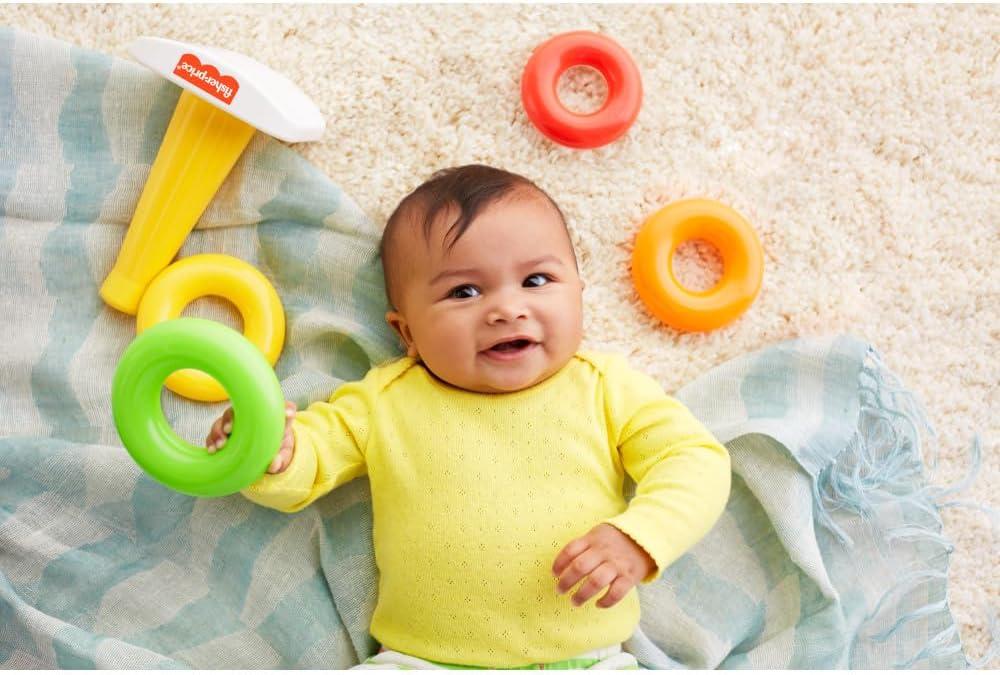 Fisher-Price Infant Toy Set, Baby’s First Blocks (10 Shapes) and Rock-a-Stack Ring Stacking Activity for Ages 6+ Months(Rock-A-Stack)