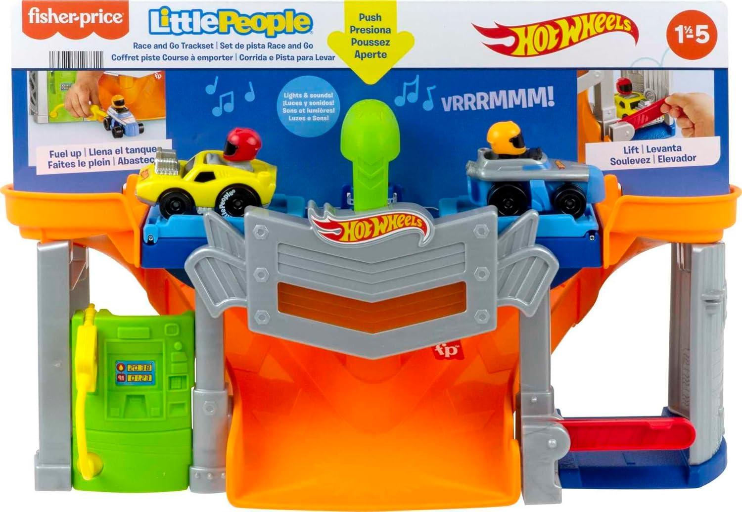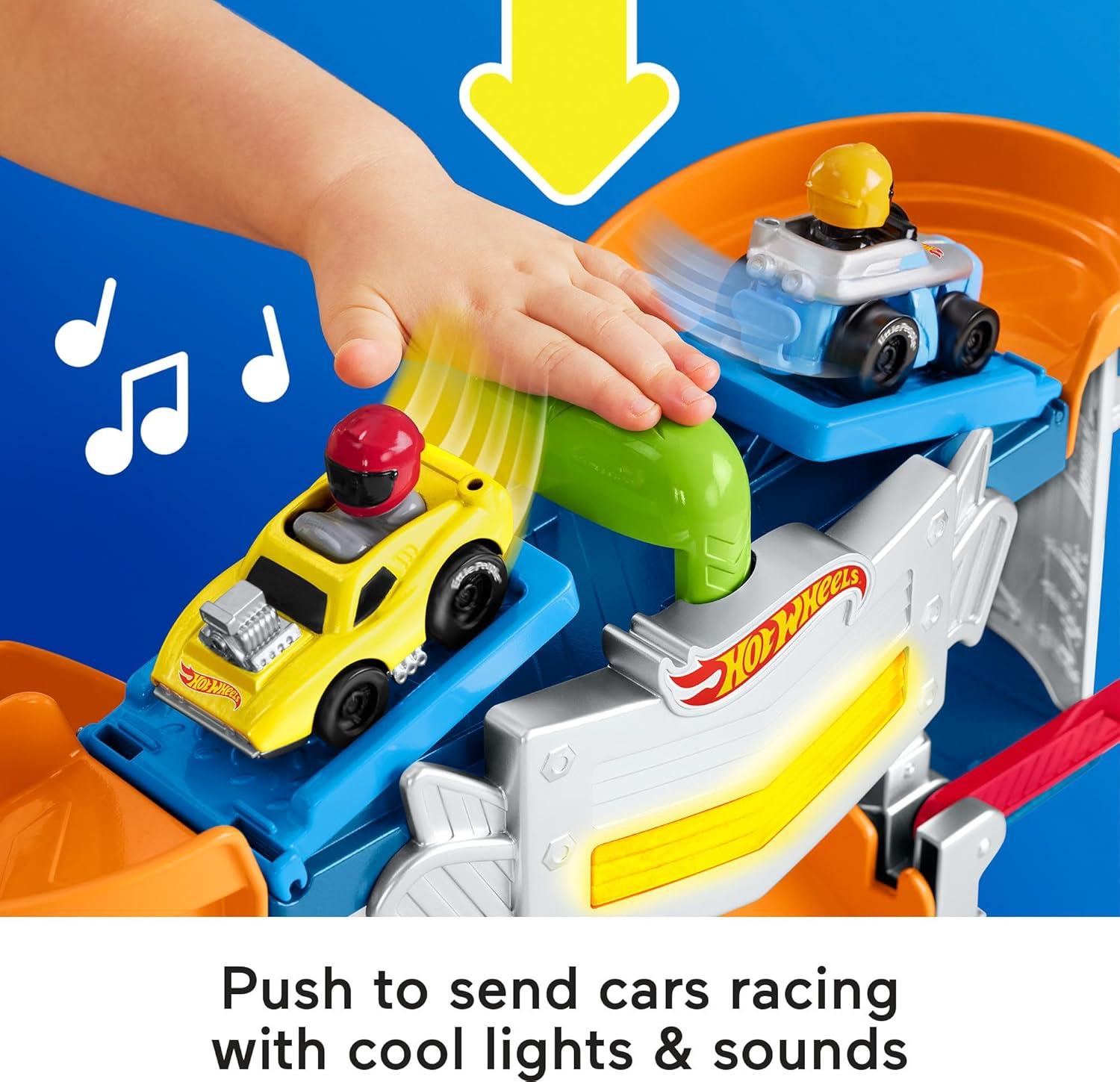 Little People race track with lights, sounds, and cool Hot Wheels styling for toddlers and preschool racers ages 18 months to 5 years