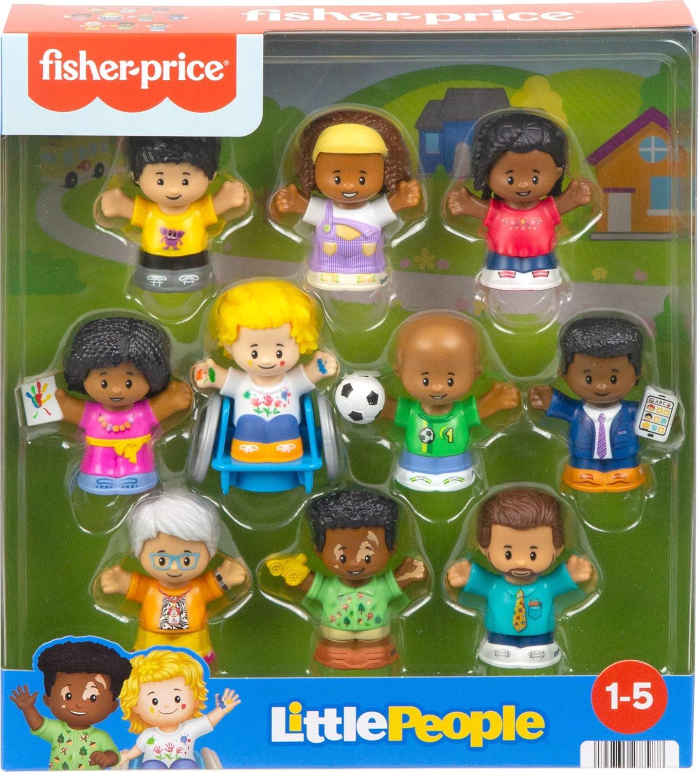 Populate your toddler’s playtime with the friendly faces of this Little People Classroom Figures set from Fisher-Price. Featuring a diverse group of familiar characters, including childhood friends, a school principal, a teacher and more, this 10-piece Little People figure set lets kids create their own fun stories again and again. Bring these figures to any Little People playset to expand the toddler-friendly play! (Playsets sold separately and subject to availability.) Colors and decorations may vary.