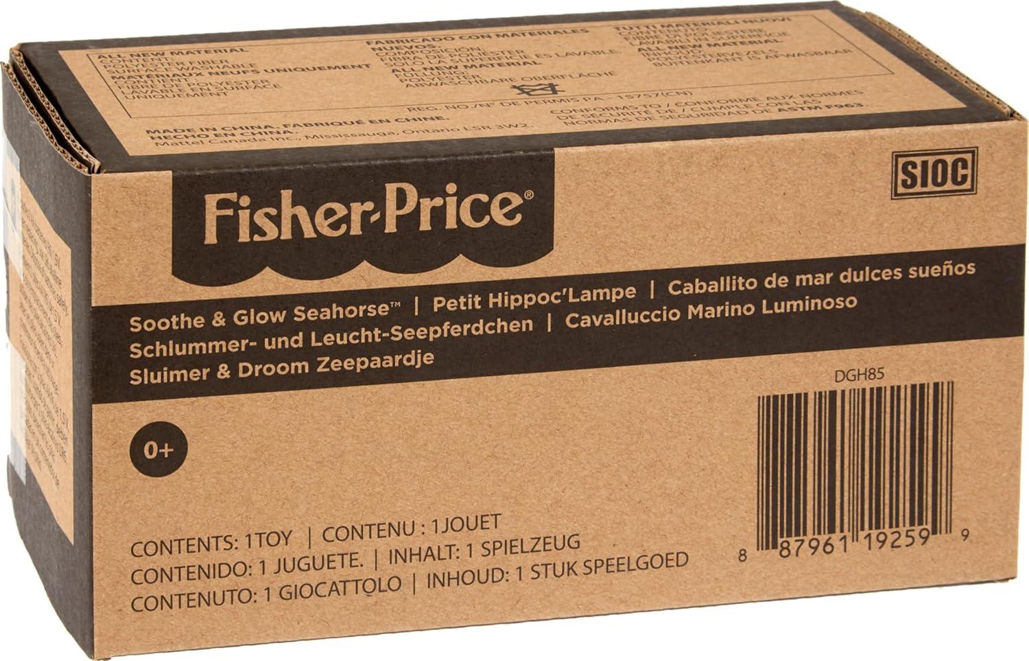 Fisher-Price Musical Baby Toy, Soothe & Glow Seahorse, Pink Plush Sound Machine with Lights & Volume Control for Newborns(Blue Easy-to-Open Packaging)