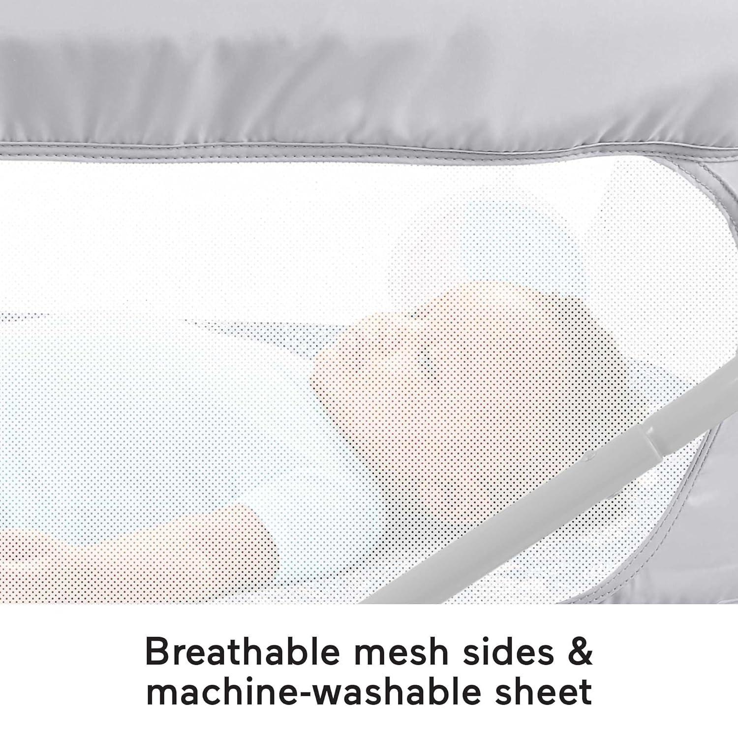 Portable, rocking bassinet with mesh sides and soothing starlight projection