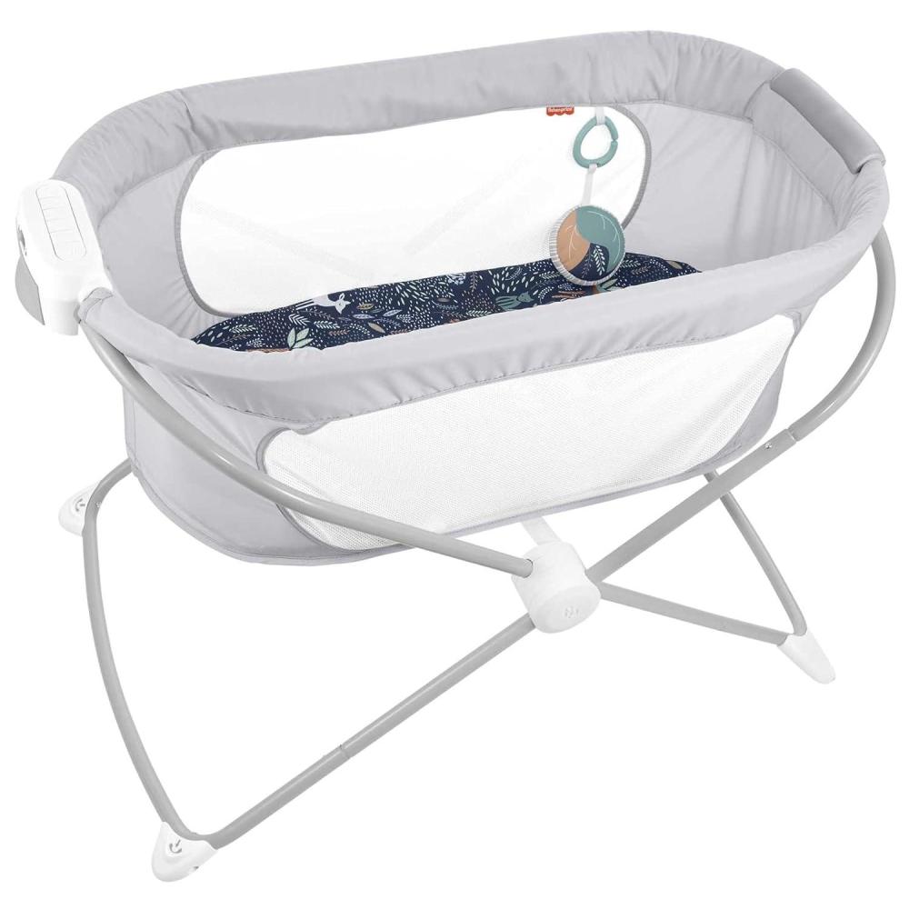 imageFisherPrice Portable Baby Crib Soothing View Projection Bassinet with Lights Music Vibrations ampamp Slim Fold for Newborns 0 Months Fawning LeavesFawning Leaves
