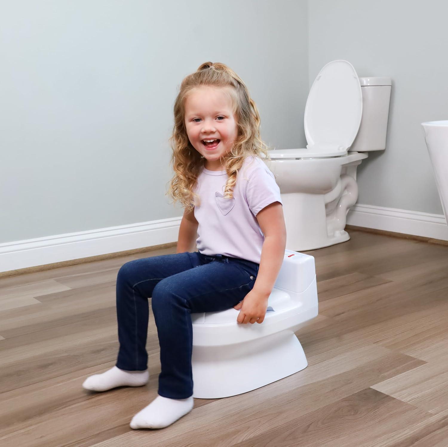 The Fisher-Price™ Potty Trainer is the perfect companion to help your toddler feel confident and excited about potty training. This sleek, white potty chair brings both functionality and style to the bathroom. Featuring realistic flushing sounds that make your potty-trainee feel like a big kid with every press of the button, reinforcing positive potty habits! The built-in handles provide extra security and support, while the removable toilet ring fits most standard toilets, making the transition to the big toilet easy as they grow. The back of the potty chair includes a fun tracking chart to celebrate your child’s progress, keeping them motivated along the way. Plus, with bonus storage for all your potty training essentials, everything you need is right at your fingertips. A contoured splash guard helps keep messes contained, and all parts are removable for easy cleaning, ensuring a hassle-free experience for parents. The The Fisher-Price™ Potty Trainer is the perfect combination of quality, convenience, and style, helping your little one take pride in this exciting milestone!