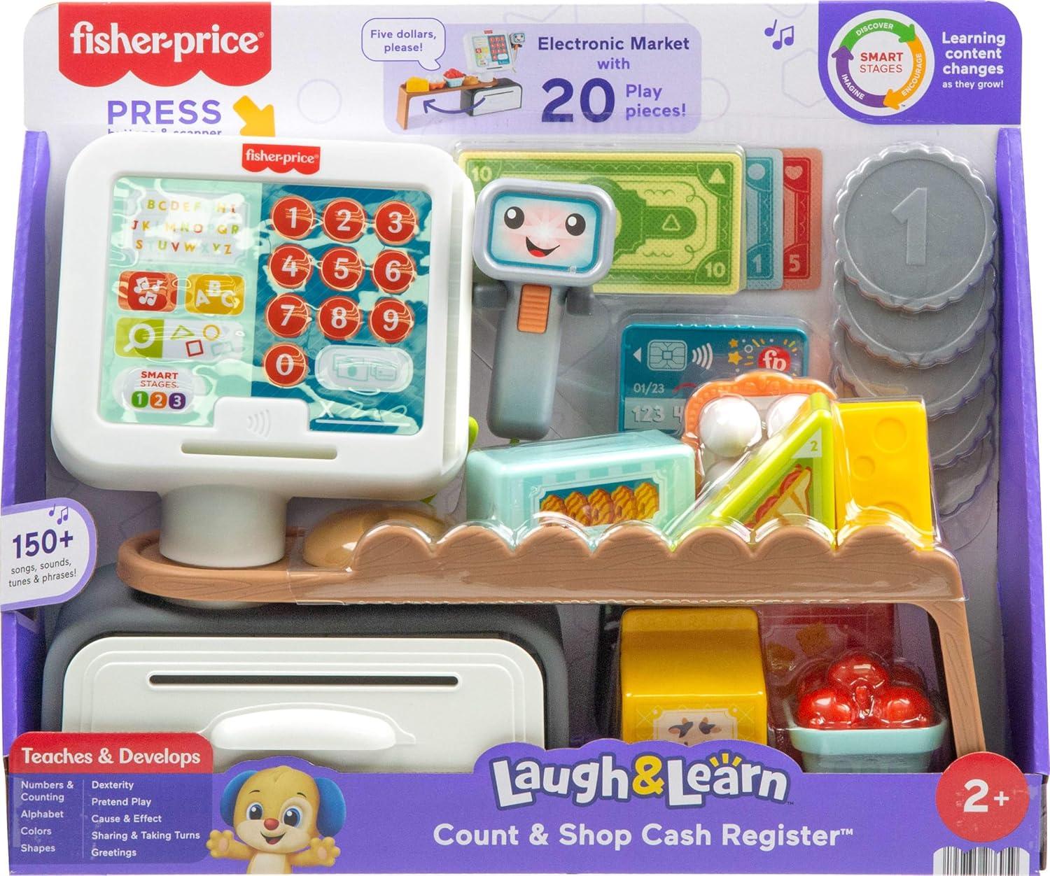 Fisher-Price Toddler Learning Toy Laugh & Learn Count & Shop Cash Register Play Store with 20 Pieces for Pretend Play Kids Ages 2+ Years