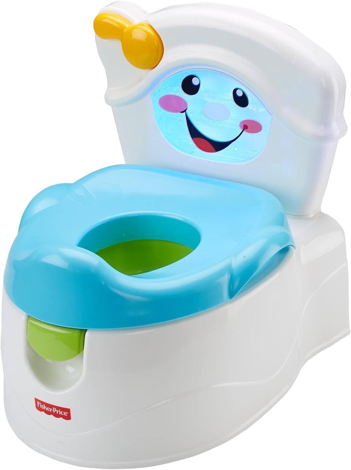 Fisher-Price Learn-to-Flush Potty makes the potty training process easy for mom, and fun for kids! When baby flushes the potty, sounds and musical ditties build potty training confidence while exciting lights and fun “twirling water” action reward potty training successes. Handles on the potty ring help toddlers feel secure. There’s a splash guard for boys, and the bowl removes for easy cleaning. As baby grows, remove the potty ring for use on a regular toilet seat, helping to make the transition from potty to toilet easy.