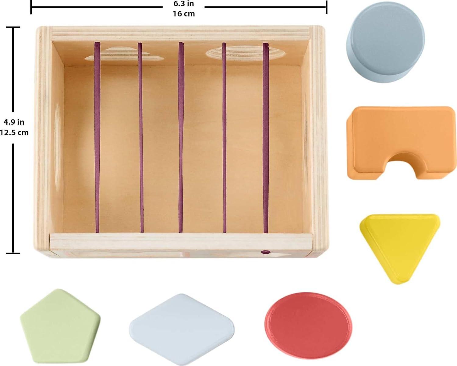 ​Wooden shape sorter activity toy with elastic bands for fun, uniquely engaging put-and-take play ​