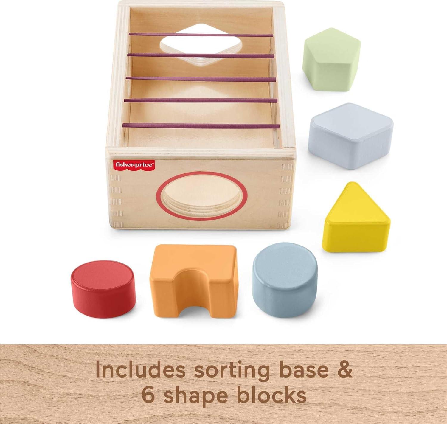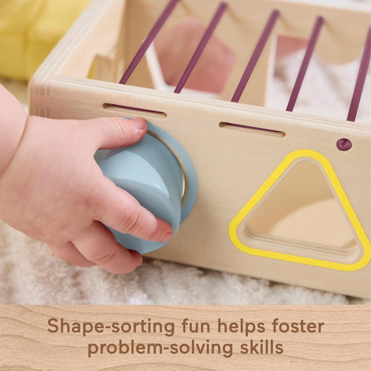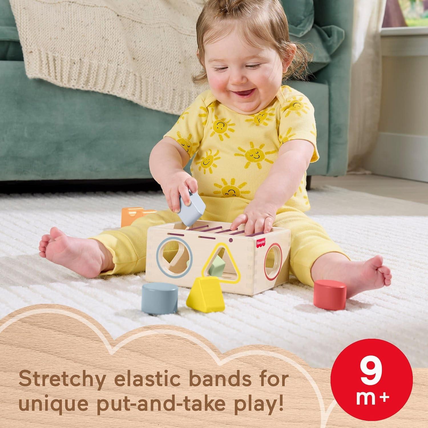 Fisher-Price Wood Baby Toy Flexi Shape Sorter, 7-Piece Wooden Activity with Elastic Bands for Infants & Toddlers Ages 9+ Months