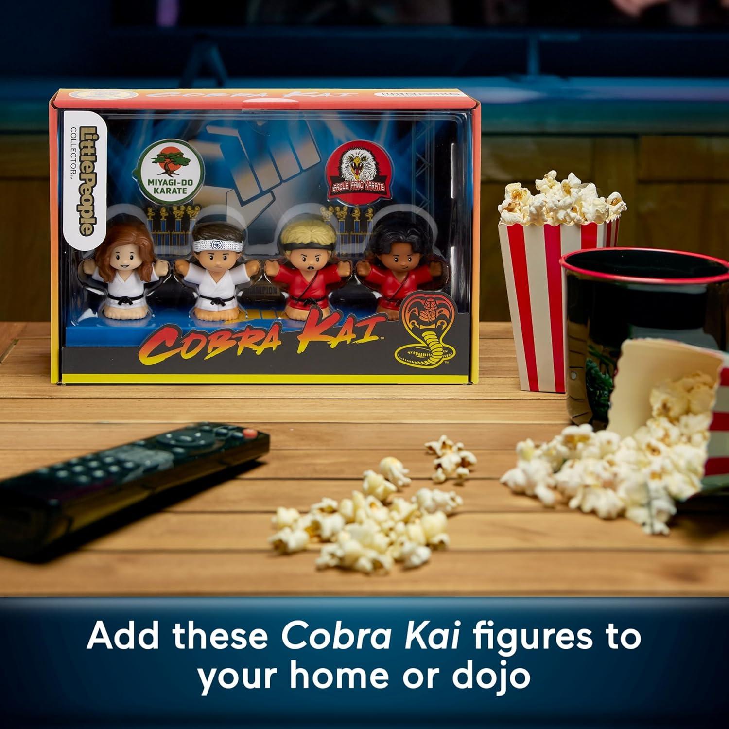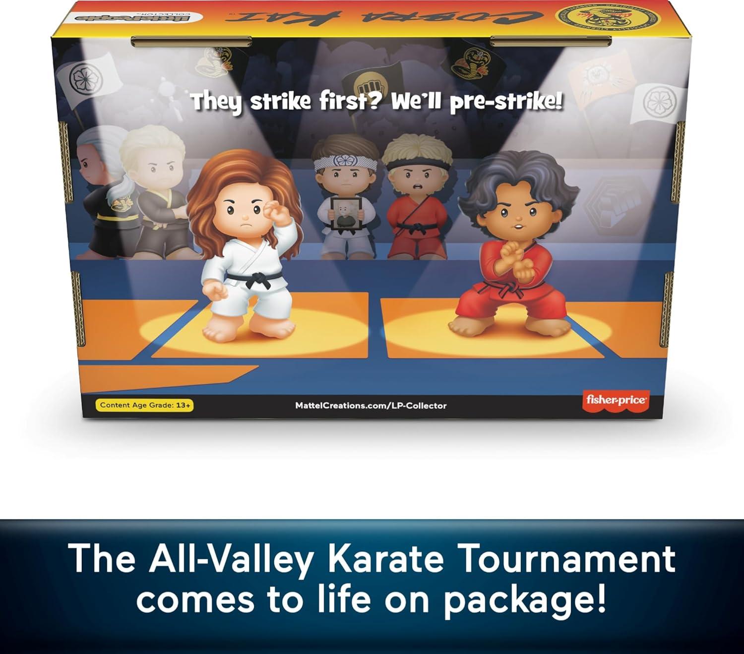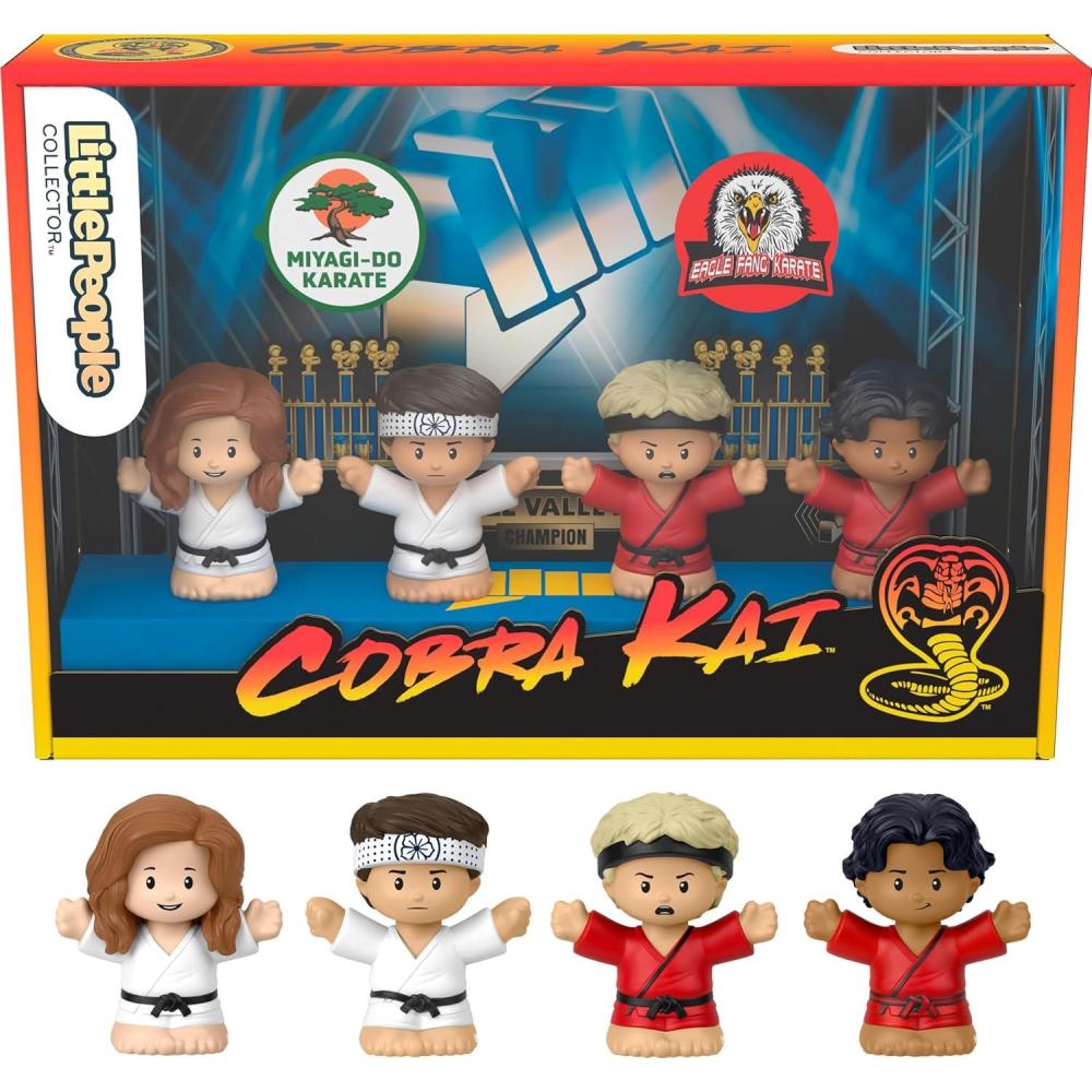The Karate Kid saga continues with this special edition Little People Collector Cobra Kai figure set from Fisher-Price. Featuring characters from the hit series Cobra Kai, the set includes Daniel LaRusso, on-again-off-again couple Samantha LaRusso and Miguel Diaz, and Daniel’s longtime rival (and Miguel’s mentor) Johnny Lawrence. The figures arrive in a display-worthy package that features illustrations of the All Valley Karate Tournament with fun details for fans to discover. For anyone who loves the original Karate Kid movies and now the spin-off television series Cobra Kai, this set is a must-have.